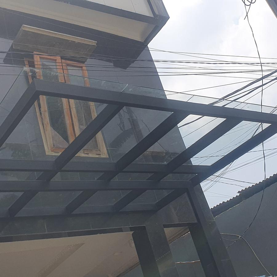 kanopy kaca tempred 8mm. rangka besi hollow 50 x 100. sesuai gambar. harga untuk 1 meter persegi. sudah include biaya pengiriman dan pemasangan.